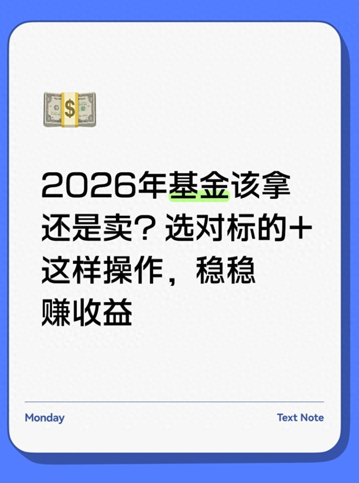 2025年的基金市场让不少基民笑开了花,权益类基金平均收益超15%,科技主题基金更是涨超30%,随便买一只都可能赚得盆满钵满。可刚进入2026年,虽然降费新规落地、北向资金还在持续扫货,基金市场热度没减,但基民心里却开始打鼓:“2025年赚了,2026年还能继续持有吗?会不会买在高位被套牢?”其实答案很明确,2026年不是不能持有基金,而是要选对标的、用对方法,才能避开风险,稳稳拿到收益。今天就用大白话把这背后的逻辑讲透,从选基金到持有的实操方法,全是能直接用的干货。